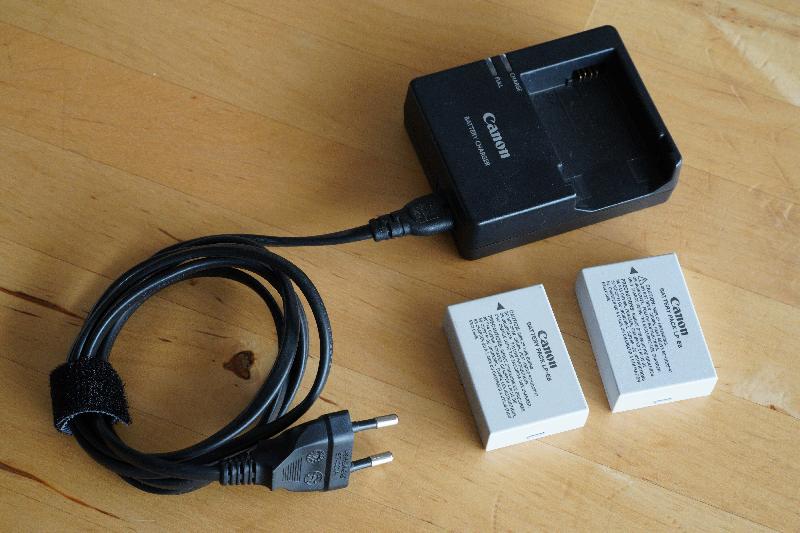 Fourni avec 2 batteries Canon, le chargeur Canon et la sangle Canon.