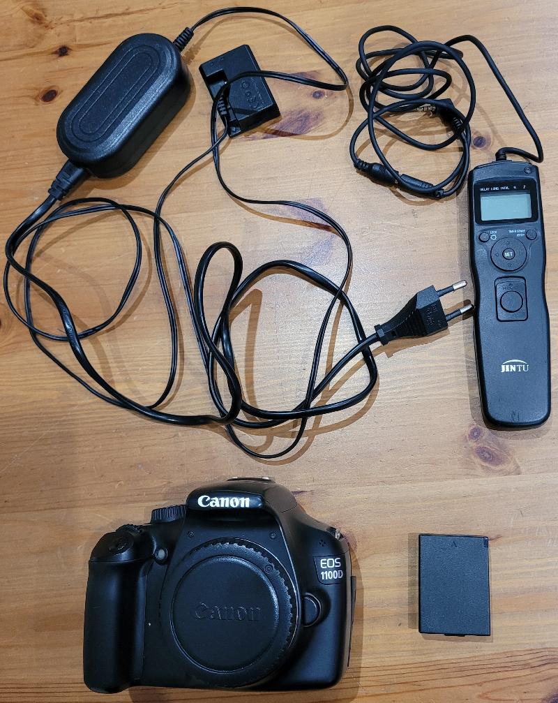 vends Canon EOS 1100D défiltré avec accessoire( intervallomètre, 1 batterie, 1 batterie secteur, 1 sacoche)