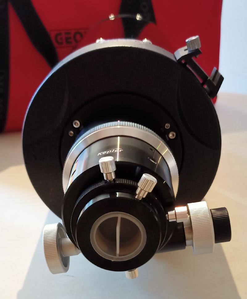 Je vends avec celui-ci un sac de transport Geoptik, un masque de Bahtnov que j'ai imprimé et un filtre solaire. Il a également tous ses accessoires d'origine, à savoir : 3 bagues d'allonge M90, le porte oculaire Crayford et un sabot pour chercheur.