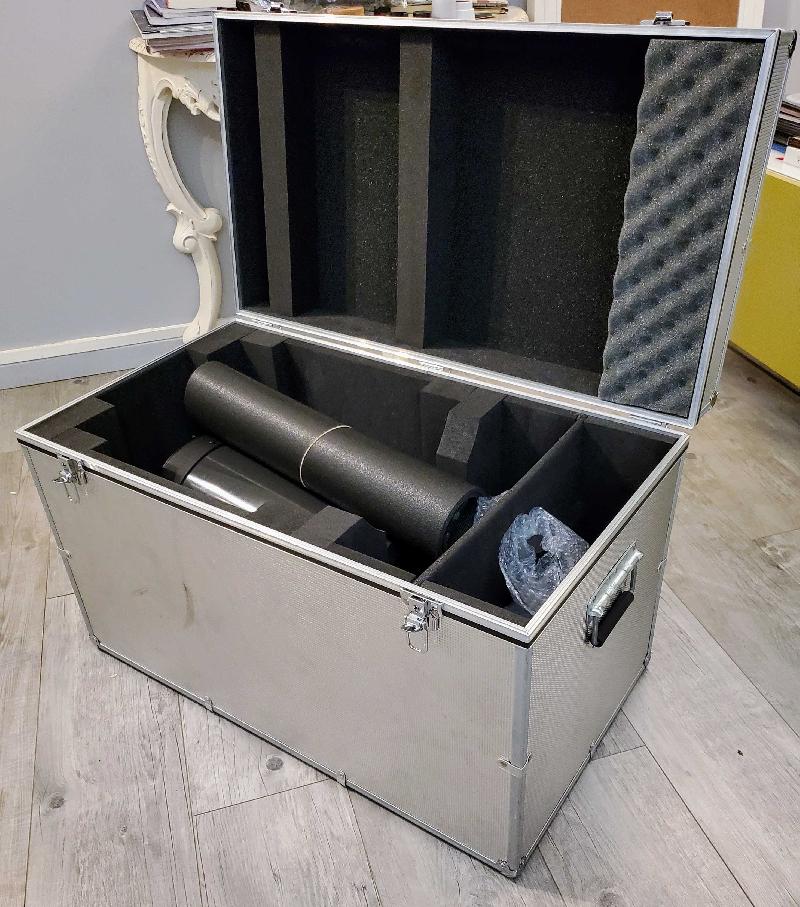 Avec le C8, je donne une grosse caisse alu à roulettes de voyage avec mousse adaptée au C8 (longueur 79cm, largeur 44cm et hauteur 51cm) qui permet de mettre beaucoup de choses en plus (très pratique en déplacement sur site)