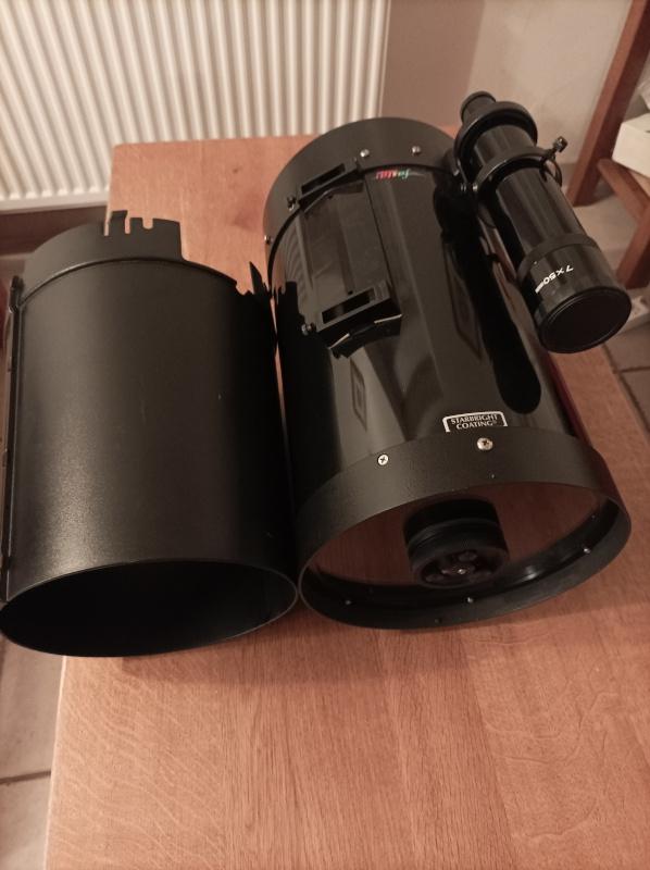 Tube Celestron C8 fastar starbright, chercheur 7x50, vis de collimations (Bob's Knobs) et pare buée : lot d'une valeur de 1300 € --> prix de vente : 590 €