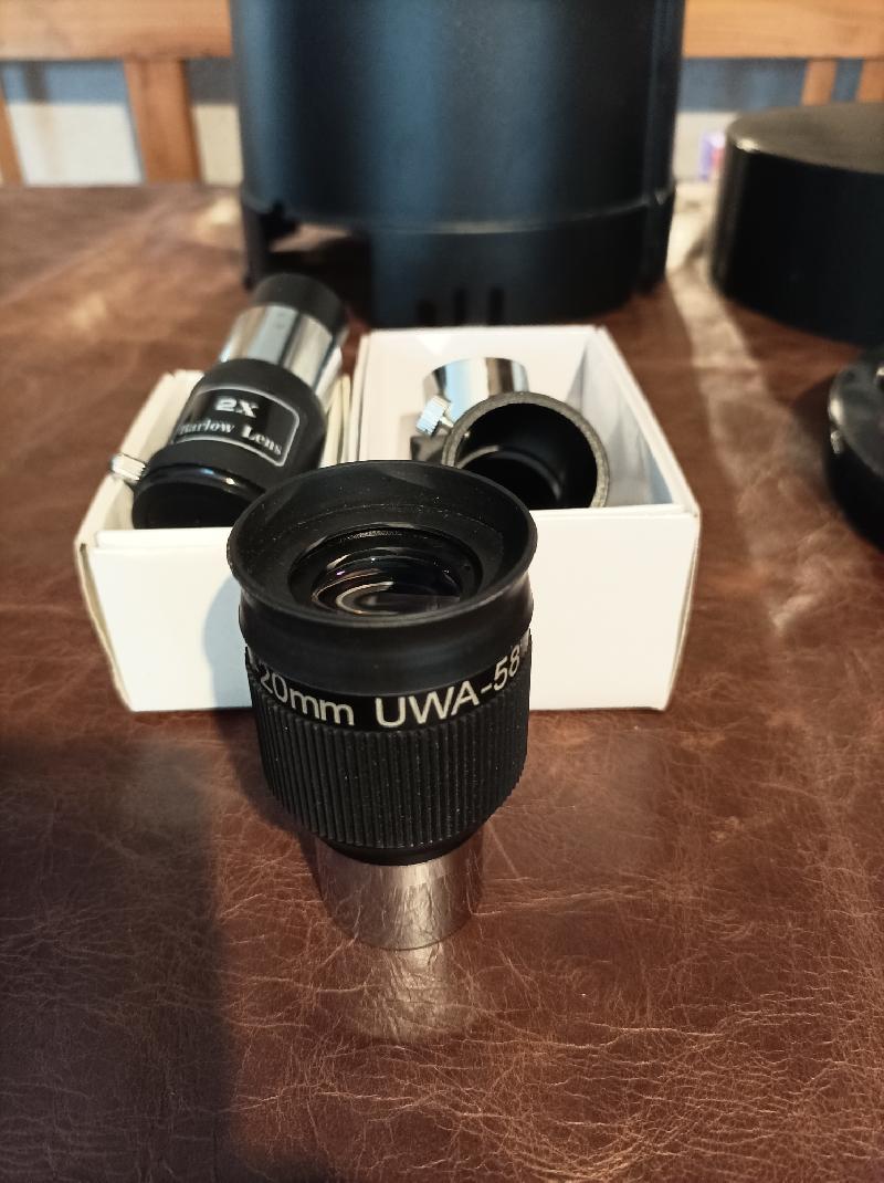 renvoi coudé, oculaire 20 mm 56 °, lentille de Barlow x2 : 90 €