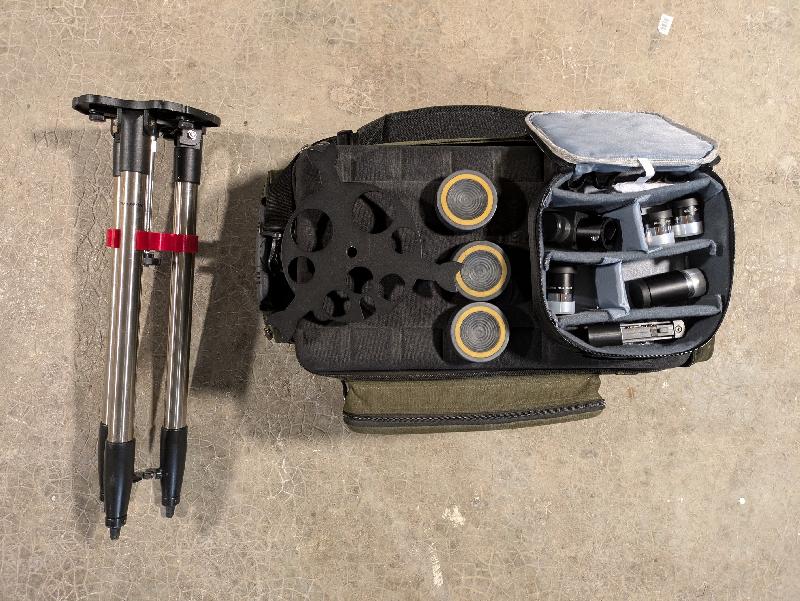 Tout ces éléments rentre dans le sac, ce qui permet de transporter facilement le télescope jusqu'au lieu d'observation sans risquer de l'abimer.