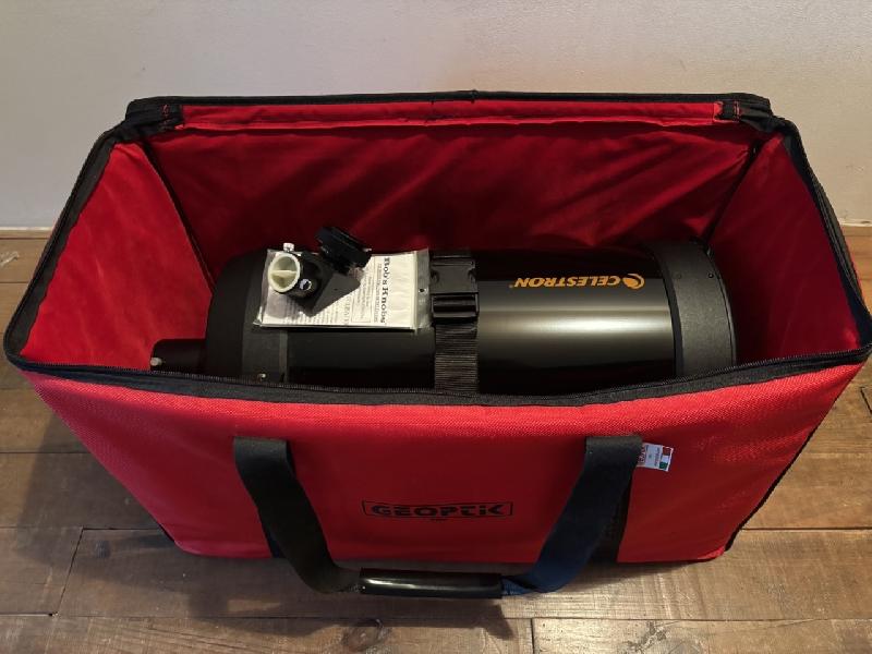 Queue d’aronde Losmandy, vis Bob’s Knobs, renvoi coudé et viseur d’origine, porte oculaire Televue 2 pouces, deux supports de chercheur, sac de transport Geoptik