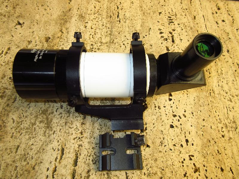 Objectif doublet achromatique 50mm traité multicouche , réticule et renvoi coudé à prisme intégré.