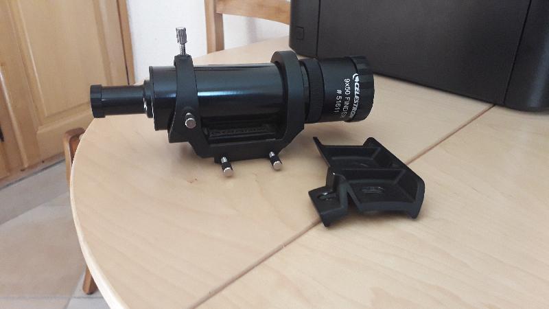 Vente pour cause dble emploi Chercheur Celestron 9x50 droit tout neuf #51611 avec support à dble collier et embase. Règlement par chèque avant envoi
