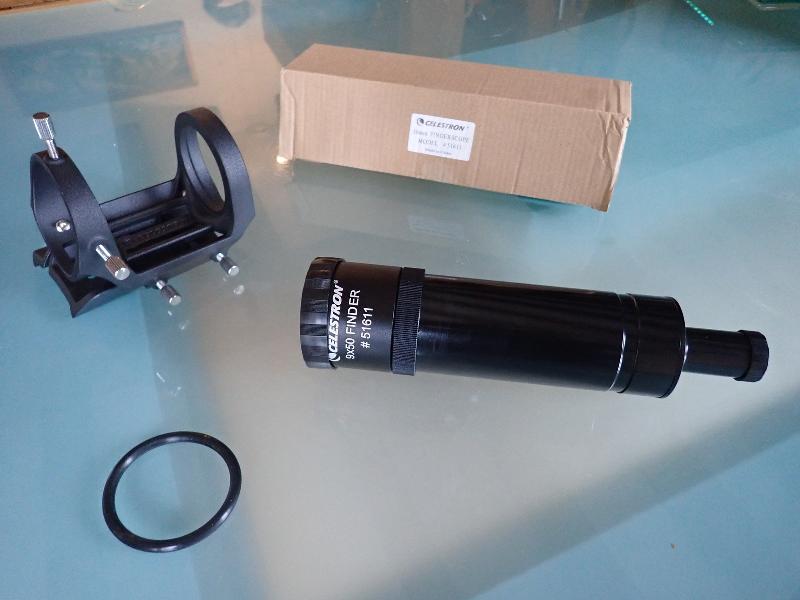 Vente pour cause dble emploi, chercheur droit Celestron 9x50 neuf #51611 avec support à dble collier et embase.