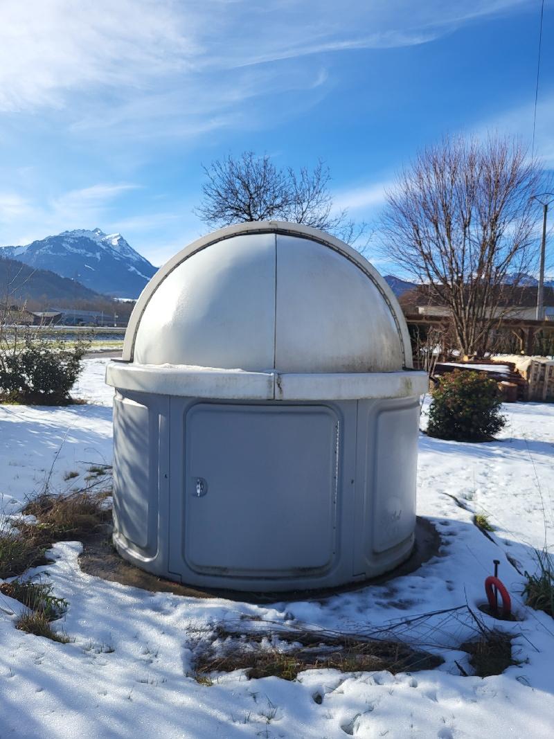 Coupole d’astronomie SkyShed Dome 2,2 m d’occasion en très bon état, idéale pour installer un observatoire personnel performant et durable. Matériau robuste, rotation fluide et ouverture pratique pour tous types de télescopes. À récupérer sur place, informations et photos supplémentaires disponibles sur demande.