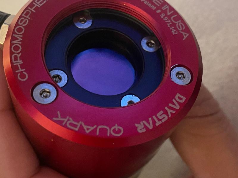 Mon fidèle Quark était en réparation ces derniers mois et ne pouvant me passer de l'imagerie solaire, j'en ai donc acheter un second pour ne pas manquer les belles éruptions et dynamiques de ces derniers mois (addiction..). Ayrant récupéré mon Quark réparé par Daystar, je vends du coup le Quark quasi neuf que j'ai acheté chez Telescopemania le 27 mai 2024 pour 1708 euros. A noter que les Quarks sont introuvables en ce moment vu que nous sommes en pleine saison d'activité solaire !