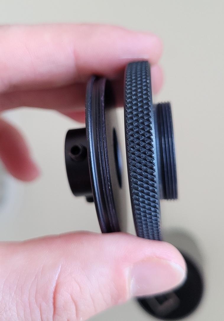 Il y a aussi une bague d'adaptation M42 femelle vers C-mount mâle pour visser une caméra avec un filetage C (comme sur les photos). (la bague semble être la référence OU076 chez PA)