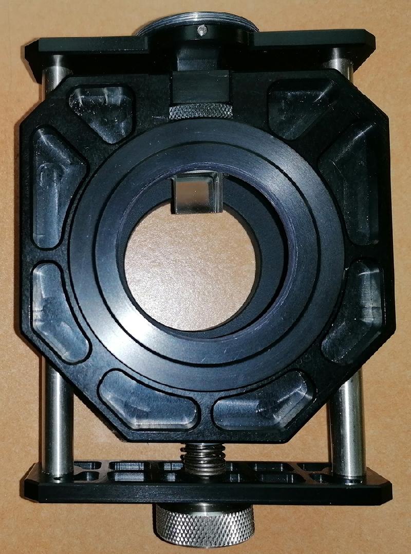 Il est monté avec un adaptateur pour caméra SBIG STL 11000 ( remplaçable bien sûr selon votre setup) et de l'autre côté avec un nez 2" en filetage M50 à la base pour une illumination du prisme parfaite (cette bague peut aussi être changée selon votre setup).