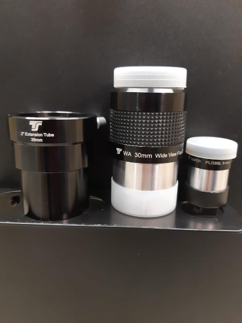 Le Dobson est vendu avec ses deux oculaires d'origine (un 30mm en coulant 2" et un 10mm en coulant 1'25), une bague allonge pour l’utilisation des oculaires au coulant 2" et chercheur optique 9x50mm. Le Dobson est équipé également d’un ventilateur (alimentation par piles fournie) placé à l’arrière du miroir primaire.