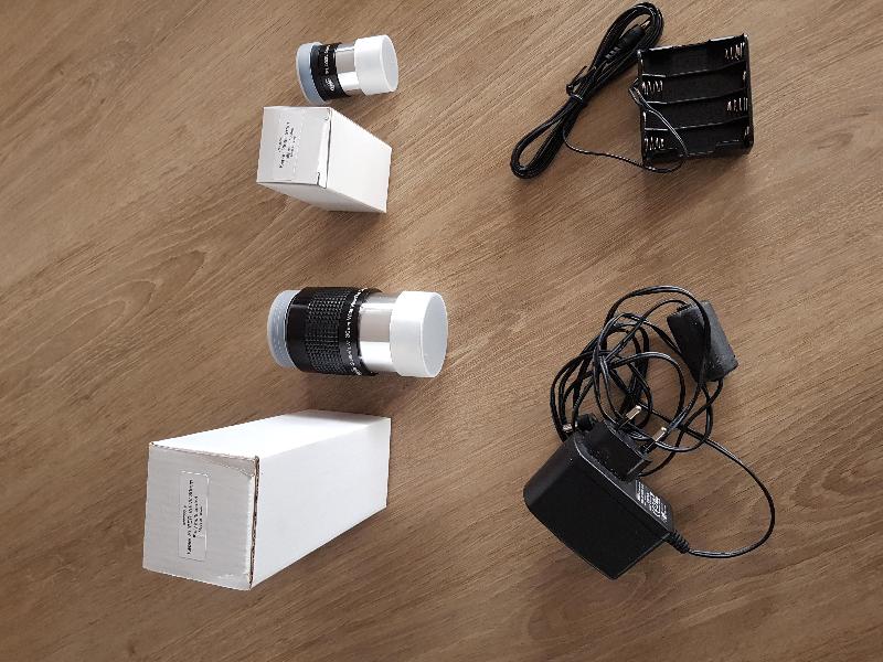 Je fournis avec le tout, un laser de collimation avec adaptateur 2", un Support chercheur Tri-Finder avec un support pour téléphone, une sangle pour pouvoir transporter le tube plus facilementet et une alimentation secteur pour le ventilateur.