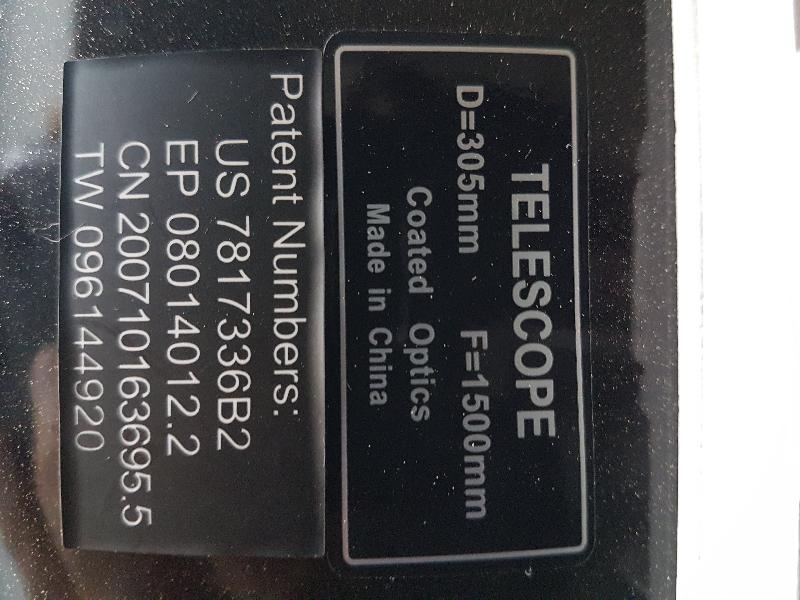 Dobson SkyWatcher Flextube 305/1500 GoTo, acheté en janvier 2021 chez Optique Unterlinden.