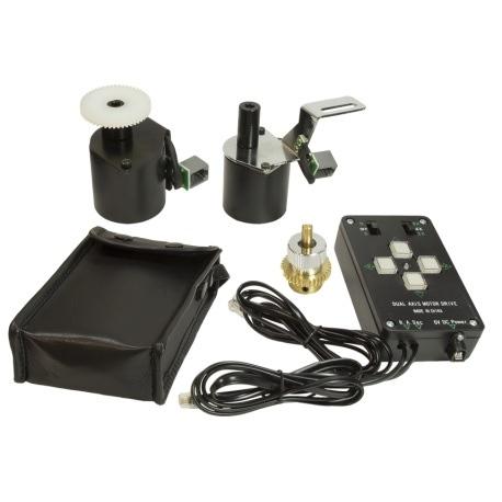 La monture est équipée du kit de motorisation à deux moteurs (RA+DEC) et de la raquette permettant le déplacement assisté.
