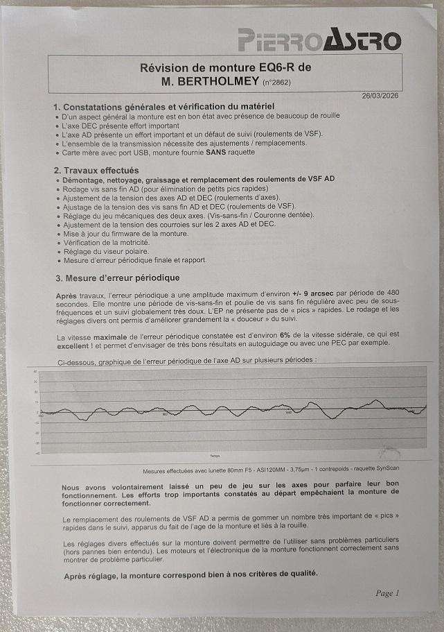 Vente monture équatoriale Vend EQ6-R-Pro achetée chez Pierro-Astro' puis révisée en Mars 2026. Très bonne état.