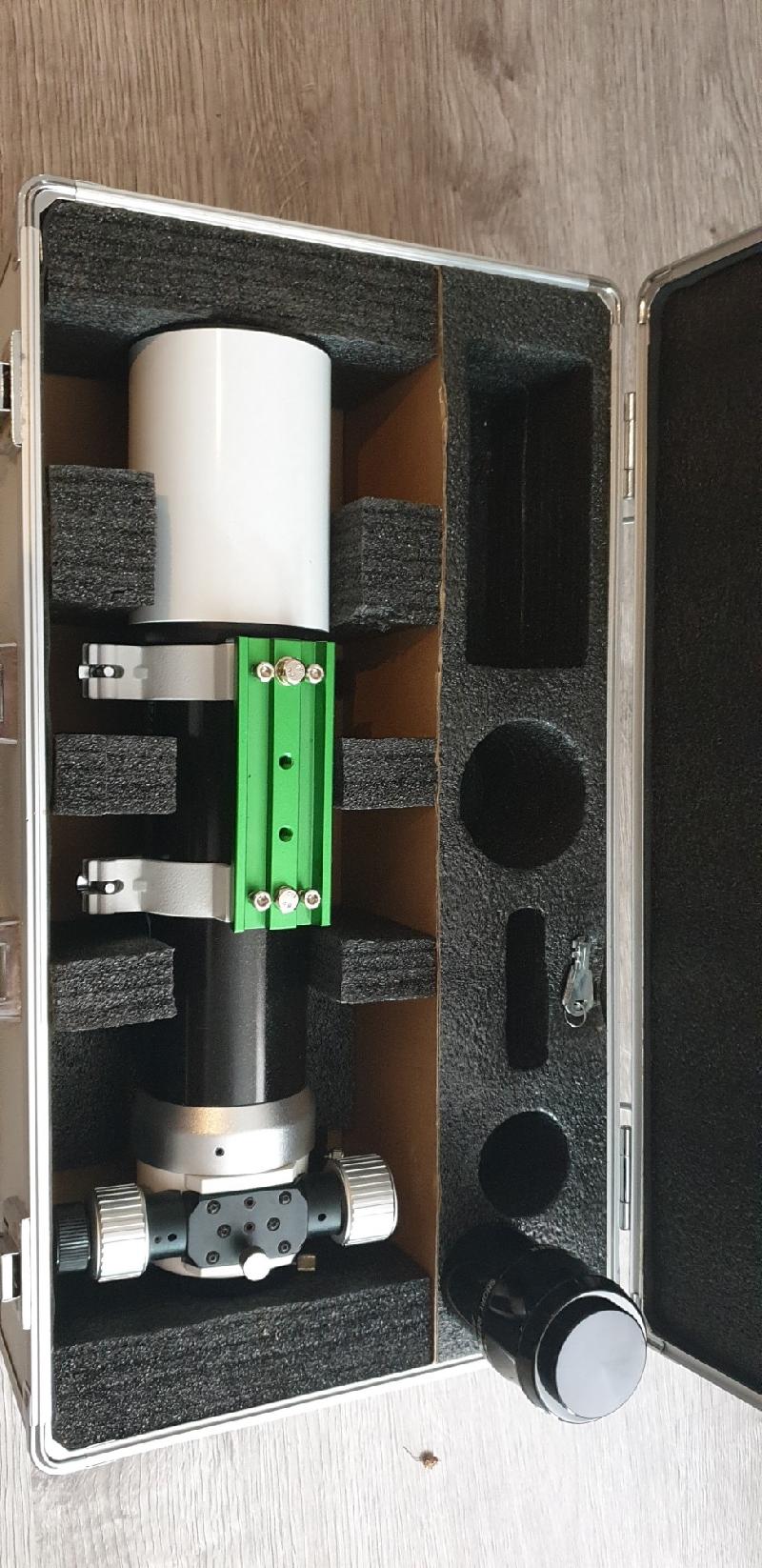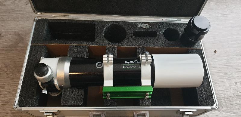 Evostar 72ED Skywatcher dans sa valise dédiée, PO démultiplié x10