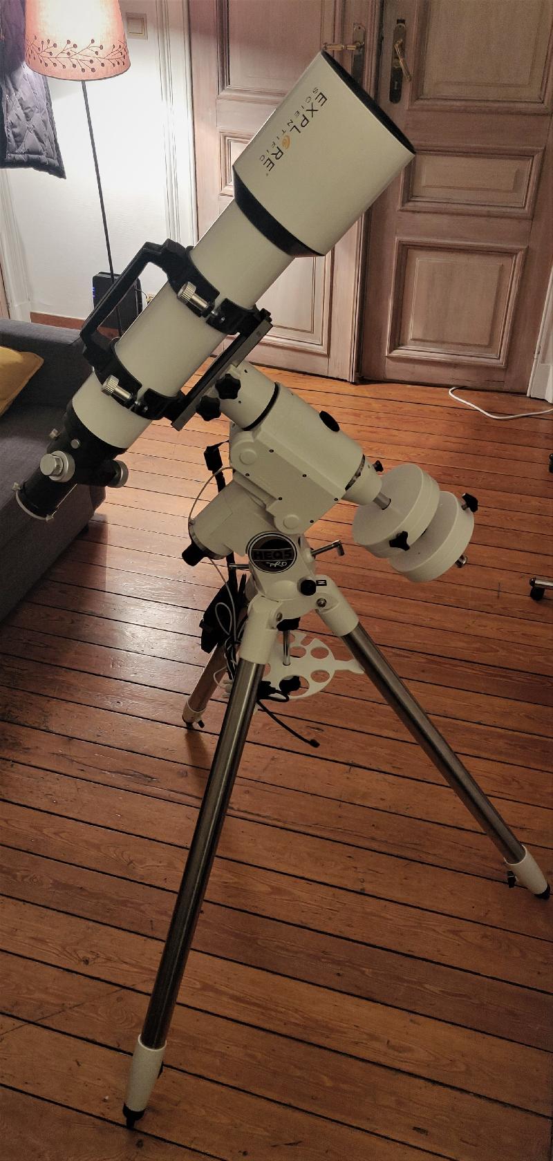 Je vends ma lunette astronomique ‘’Explore Scientific ED102 Triplet APO Refractor Telescope’’ avec une monture équatoriale HEQ5 pro motorisée Goto ensemble car je souhaiterais passer sur une lunette plus avancée. La lunette et la monture toutes les deux en très bon état viendront avec un ensemble d'autres équipements : valise pour la monture, kit courroie de motorisation d'une valeur de 150eur installée chez Pierro Astro. La composition de l’offre ainsi que les prix de vente et du neuf sont récapitulés ci-dessous, les photos reprennent l’état actuel du matériel presque neuf. Possibilités de livraison gratuite en Belgique et hauts-de-France.