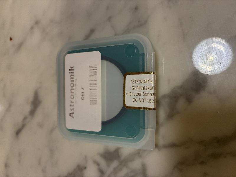 Vends très bon état un filtre Astronomik O3 en 2 pouces. Très peu utilisé.