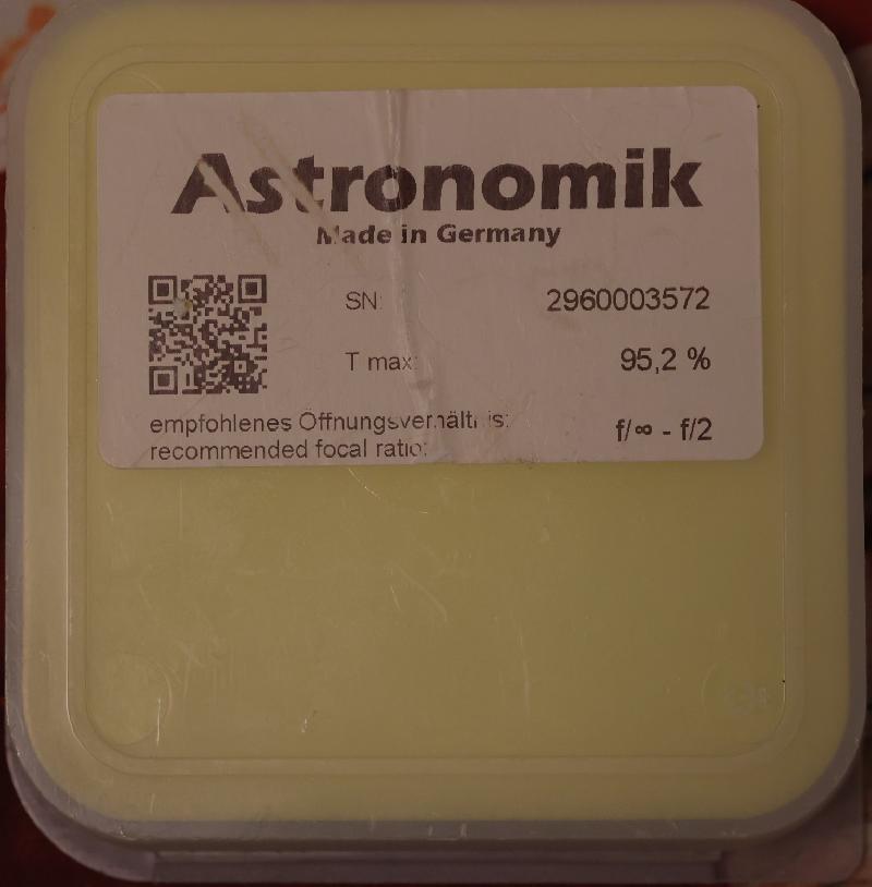 Vends un filtre Astronomik OIII 6nm CCD 1.25". A toujours été dans ma roue à filtre. Je le remplace juste par un Baader pour avoir du quasi parfocal avec mes filtres Baader Ha et Sii existants.