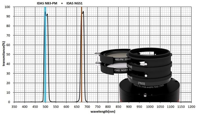 Le filtre NB3 est un filtre à double bande passante spour des caméras couleur à prise unique (OSC). Il transmet les lignes d'émission SII et OIII, améliorant le contraste de ces caractéristiques dans les nébuleuses en émission. Idéal pour créer un contraste de luminance dans les images RGB traditionnelles ou pour produire des images dans des palettes de fausses couleurs populaires.