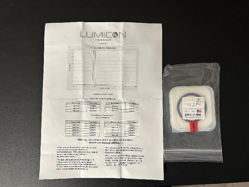 Vds filtre Lumicon OIII Gen 3 50,8mm avec son rapport de test individuel, un des meilleurs filtres au monde. Etat absolument neuf !