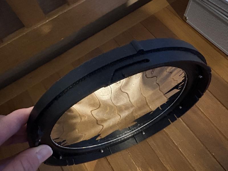 Suite à la vente de mon C8 je mets en vente un filtre solaire de conception perso en PETG avec feuille Baader Astrosolar OD 5.0 (visuel et photo). C'est un design classique => feuille prise en sandwich avec une cellule sécurisé à l’intérieur du support. Le support vient après s'emboiter sur le C8 en le tournant comme le capot de protection de la lame.