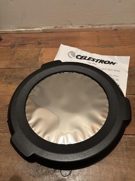 Filtre solaire Celestron pour C9.25Prix: 85€Dordognele 06-02-2026 par ViViDFiltre solaire Celestron pour C9.25 S’emboite en lieu et place du capot de protection du C9. Viseur solaire Angeleyes offert.