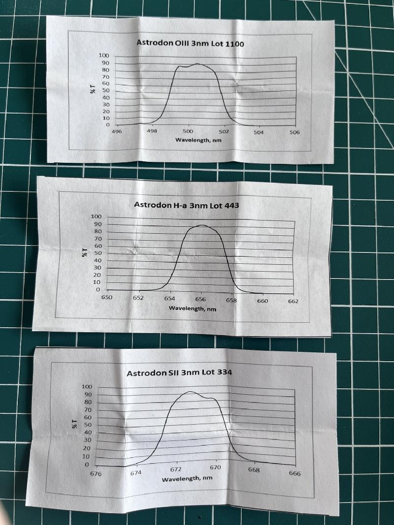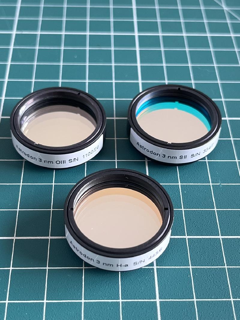 - 3 filtres à bande étroite SII, H-a, OIII, en 3nm