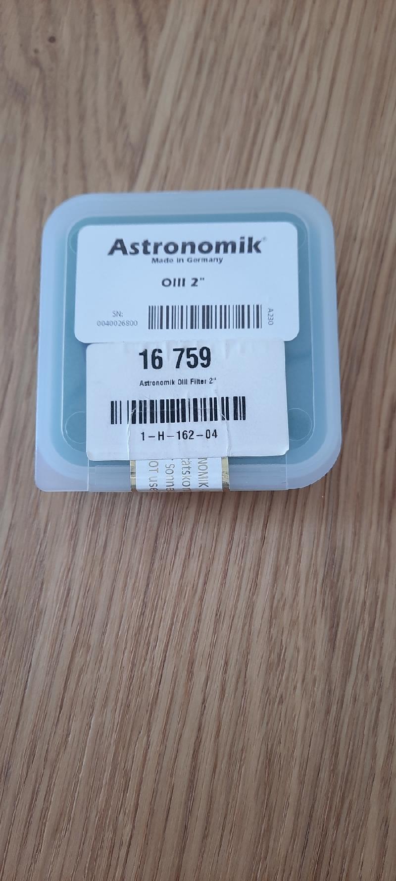 Vend filtre Astronomik OIII 12nm en 2" comme neuf avec boite d'origine, bradé 120€