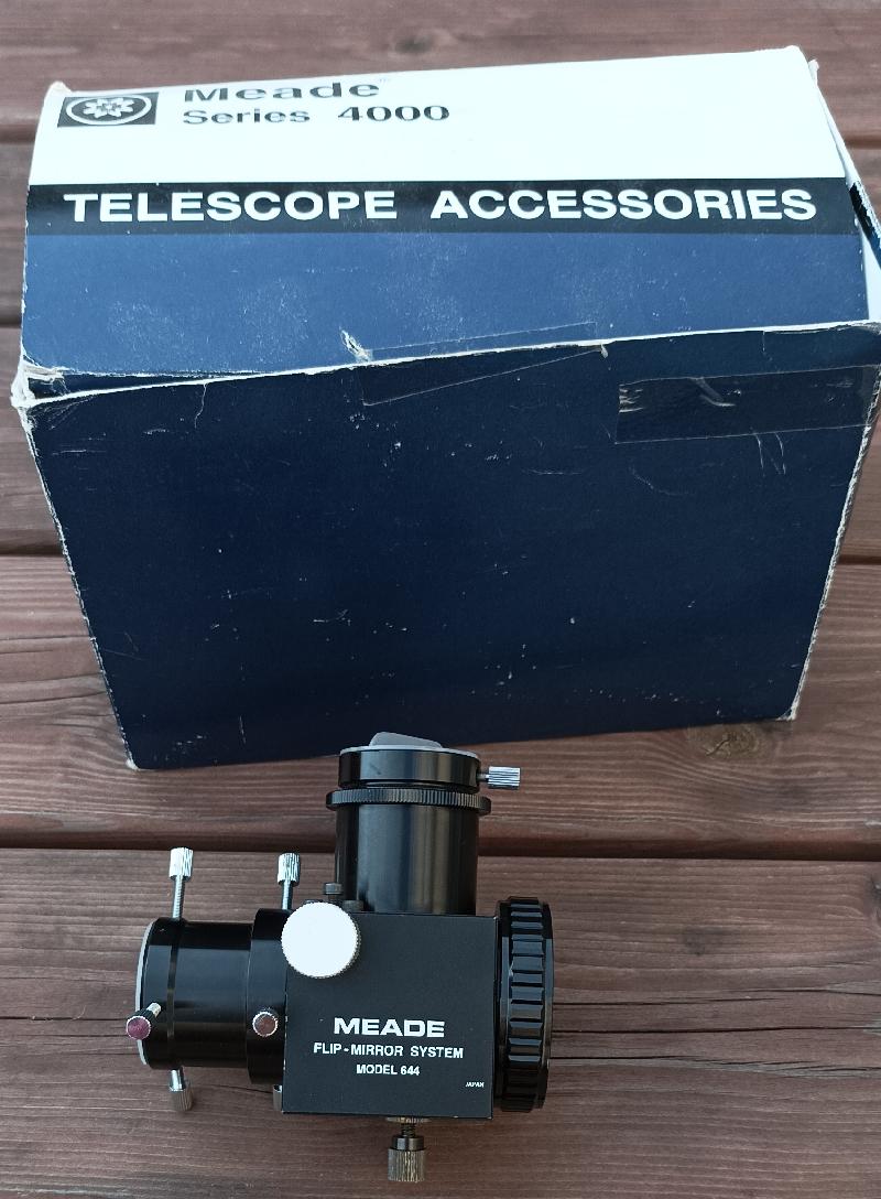 Je vends un renvoi coudé à miroir basculant (Flip-Mirror) pour télescope Schmidt-Cassegrain. Très bon état. Cet outil de la marque Meade est idéal pour centrer les objets sur le capteur d’une caméra.