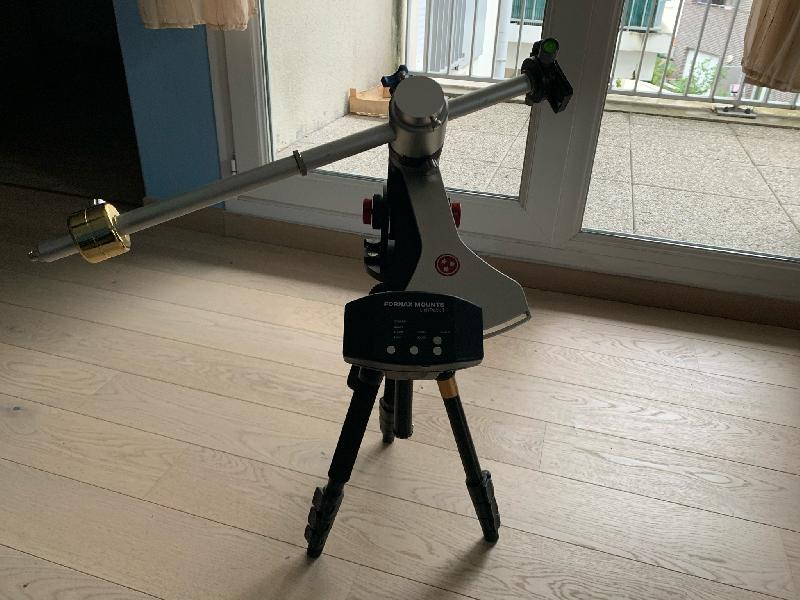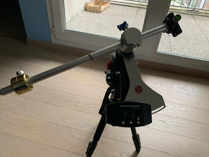 Vendue avec la base équatoriale Fornax FMW-200 Wedge, un système de contrepoids chinois (acheté sur aliexpress, je trouvais celui de Fornax hors de prix) et un adaptateur pour y fixer une Polemaster.