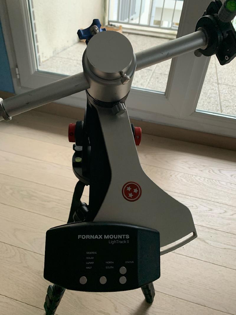 Je revends ma monture Fornax Lightrack II achetée en juin 2019. Elle permet un suivi en ascension droite de 1h45 avec une précision remarquable. Equivalent d'une Astrotrac. On peut faire du suivi en AD via port ST4 mais honnêtement je n'en ai jamais eu besoin vu la précision de la monture.