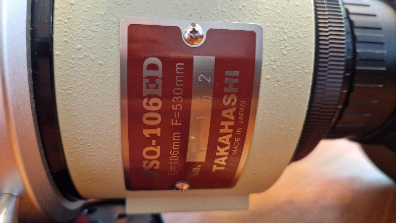 Cause non utilisation vend une FSQ 106 ED version captainwheel avec anneaux et queue d'aronde losmandy, excellent état, révisée et collimatée par Optique Underlinden il y a 2 ans.