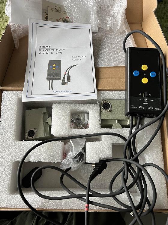 le 25-11-2025 par DodiSet de deux moteurs originales en couleur vert-gris Vixen, complèt pour le montage (incl. les clutches Vixen pour libérer les moteurs), avec controleur Japonais compatible DD-3. Il a une connection autoguidage et des vitesses sidéral, lunaire et solaire (le Vixen DD-3 n'offre que sidéral).