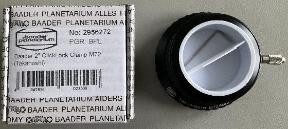le 14-09-2025 par startarVends système de blocage Baader Clicklock pour Takahashi en M72, pour blocage rapide d’un accessoire ou d’une ligne optique au coulant 50,8 mm. État neuf, commandé par erreur pour le montage d’une tête binoculaire. Prix : 70 € hors frais de port.