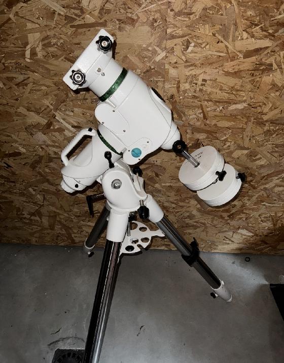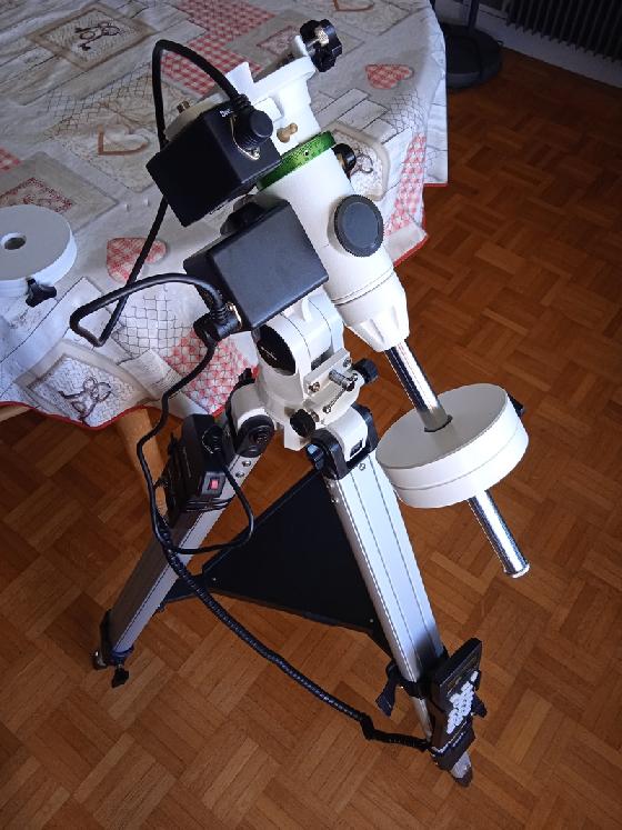 Vends monture Eq6r pro acheté en 2020. Fournis avec sac de transport Oklop, télécommande et alimentation allume cigare/secteur. Quelques traces d’oxydation sur la barre de contre poids visible sur la photo.