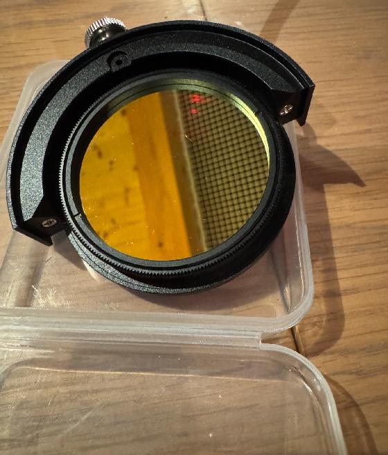 Sol'Ex version 1 completPrix: 380€le 03-12-2025 par JPRMSpectrohéliographe Sol'Ex complet version 1 avec raidisseur externe, fente de 10 µm, avec son focuser hélicoïdal, son nez 31,75 mm, son viseur solaire, un deuxième objectif caméra f 60 mm et deux filtres Hoya PROND ND16 diam. 67 mm et ND4 diam. 72 mm. Il est recouvert par du ruban adhésif alu pour éviter la chauffe au soleil. Il possède aussi deux vis poussantes pour tourner la fente et corriger le « sland » sans tout démonter et trois vis pour pencher le réseau. Prix 380 € hors frais d’envoi.