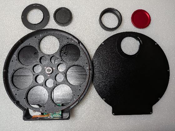 Je vends ma roue à filtres ZWO EFW 7x2" en état impeccable, complète avec son jeu de bagues d’adaptation (M54-M48, M54-M42, etc.) et deux bouchons en aluminium (avant et arrière), pour une protection optimale lors du transport ou du stockage.