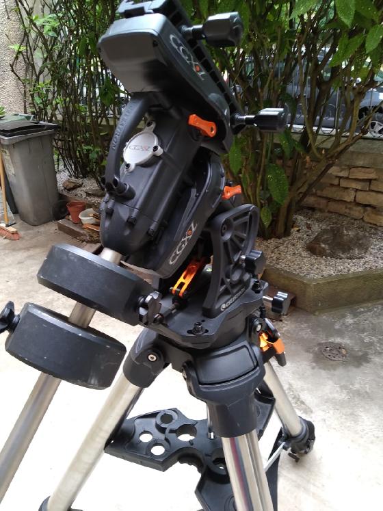 je vends une monture Celestron CGX-L avec son trépied métallique, la raquette de commande et 2 contrepoids de 10 kg.