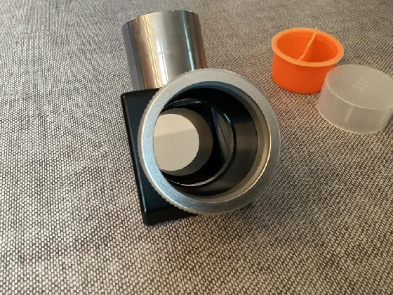 Avec renvoi coudé Baader + bague adaptative, sac de transport, boîte de rangement en bois.