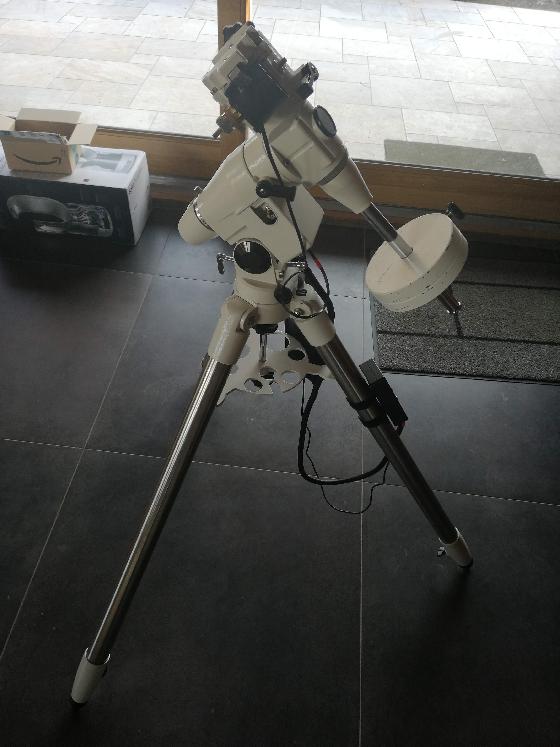 Je vends une monture Neq5 SW en bon état, quelques petites traces, elle est équipée d'une raquette de commande avec son bloc d'alimentation 6V à piles.