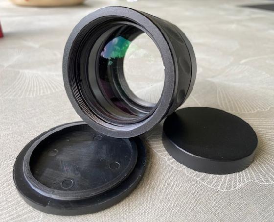 C’est un doublet achromatique à 2 lentilles O'hara FMC (made in Japan) au chromatisme très bien maitrisé pour ce rapport d’ouverture, rien à voir avec les lunettes guide Kepler, Skywatcher ou autres à 130€