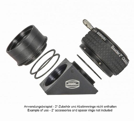La bague d'assemblage rapide Baader T-2 est usinée à l'intérieur en queue d'aronde, et est dotée d'une vis de serrage à filetage M4 (4 mm de diamètre avec solide embout de sécurité), permettant une fixation très solide d'accessoires astronomiques, y compris des accessoires relativement lourds.