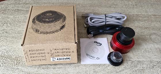 Camera couleur ZWO ASI 224MCPrix: 120€le 03-12-2025 par nicoairbusCaméra ZWO ASI224MC en très bon état. Idéal pour le planétaire et bonne caméra pour l'autoguidage .