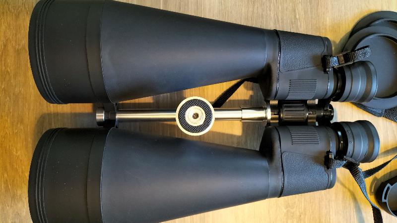 L'utilisation à main levée est possible sur une courte durée ; au delà prévoir un trépied photo ou une monture azimutale. La fixation sous la barre d'équilibrage des jumelles permet de fixer ces jumelles (pas standard 1/4 Kodak)