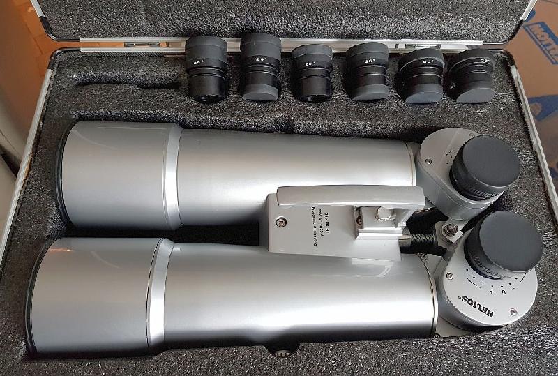Vends jumelles Hélios 88mm, oculaires 20-26-32x, renvoi coudé 90°, MAP sur chaque oculaire, espacement inter pupillaire réglable.