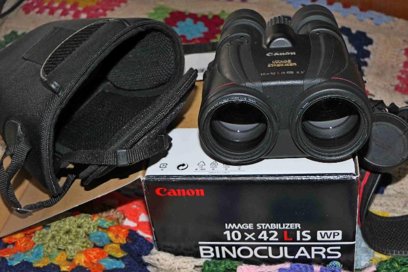 jumelles stabilisées,2 piles AA, canon 10x42 IS , de 2013, peu servie et en TBE, aucun choc, lentilles(protégées par deux filtres) lumineuses de qualité pro canon, hélas maintenant un peu trop lourde pour moi,
