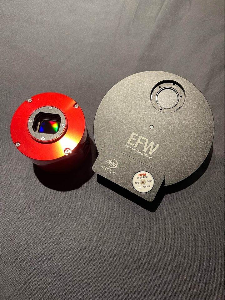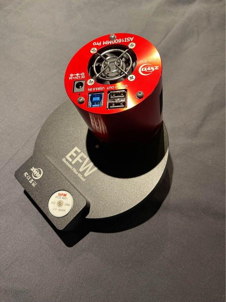Camera ZWO1600MM PRO avec roue à filtres 8 positions en parfait état, aucune marque d’usure (très peu utilisée).