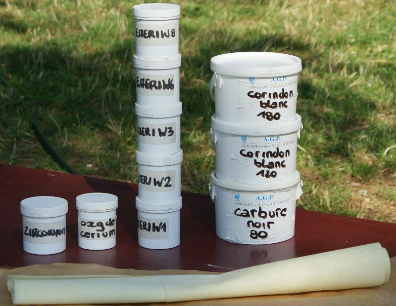 Pour cause d'abandon du projet, je vends un kit d'abrasifs complet, origine A.G.P. Paris (Abrasifs Grains et Poudre) :